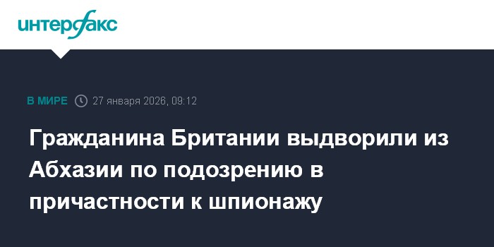 Москва. 27 января. INTERFAX.RU - Гражданин Великобритании, подозреваемый спецслужбами Абхазии в связях с иностранной разведкой, задержан и выдворен из республики, сообщает пресс-служба СГБ Абхазии.