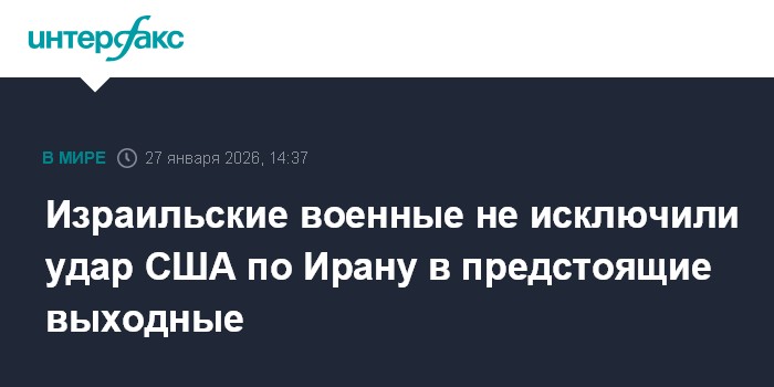 Москва. 27 января. INTERFAX.RU - Армия обороны Израиля готовится к возможному проведению американской военной операции против Ирана в предстоящие выходные, сообщил изданию The War Zone высокопоставленный представитель ЦАХАЛ.