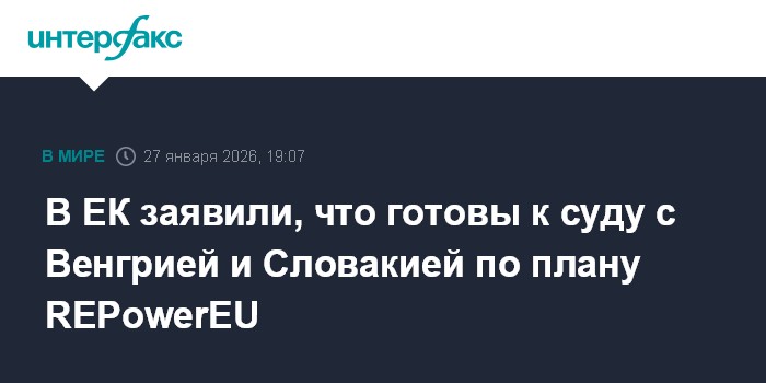 Так она ответила на вопрос о намерении Венгрии и Словакии обратиться в Суд Евросоюза в связи с принятием 26 января регламента по полному запрету поставок газа из России и о том, будет ли ЕК защищаться и не отодвинет ли сроки вступления в силу новых правил судебное разбирательство, которое может затянуться.