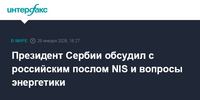 Москва. 28 января. INTERFAX.RU - Президент Сербии Александр Вучич провел встречу с российским послом Александром Боцан-Харченко и обсудил с ним вопросы, связанные с нефтяной компанией NIS, "дочкой" "Газпром нефти". Об этом Вучич сообщил в соцсети.