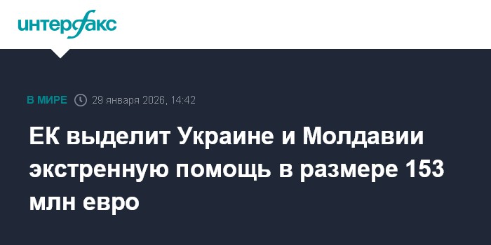 Москва. 29 января. INTERFAX.RU - Еврокомиссия (ЕК) объявила в четверг о выделении 153 млн евро экстренной помощи Украине и принимающей беженцев Молдавии для обеспечения острых потребностей, связанных с низкими температурами и отсутствием электроэнергии.