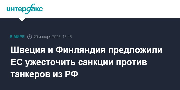 Москва. 29 января. INTERFAX.RU - Власти Швеции и Финляндии предложили ЕС ужесточить ограничительные меры в отношении танкеров из России, заявила в четверг глава шведского МИД Мария Мальмер Стенергард.