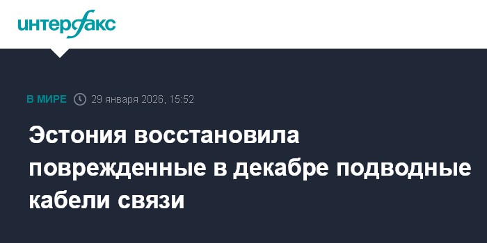 Москва. 29 января. INTERFAX.RU - Эстонские морские кабели, поврежденные по разным причинам в канун Нового года, были окончательно отремонтированы на этой неделе, сообщило Министерство юстиции и цифровизации.