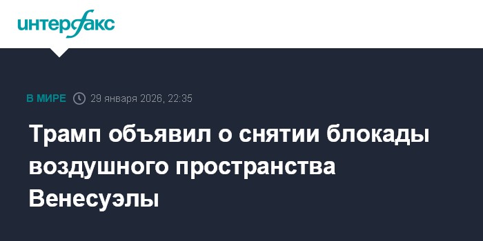 Москва. 29 января. INTERFAX.RU - Президент США Дональд Трамп заявил, что воздушное пространство над Венесуэлой вновь открыто.