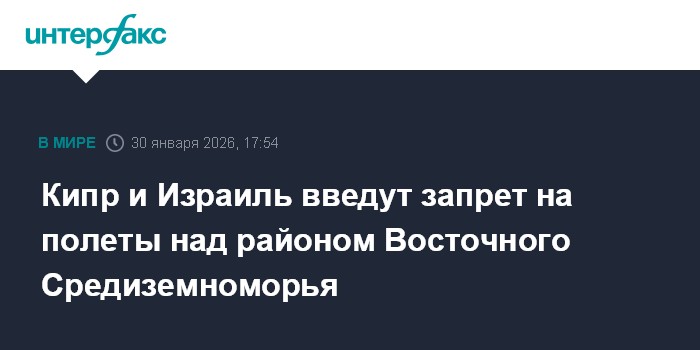 Кипр и Израиль введут запрет на полеты над районом Восточного Средиземноморья