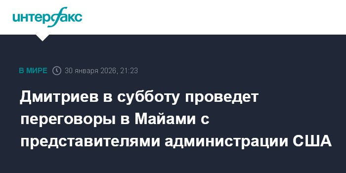 "Спецпредставитель президента РФ Владимира Путина Дмитриев в субботу будет вести в Майами переговоры с командой США", - сообщает агентство.