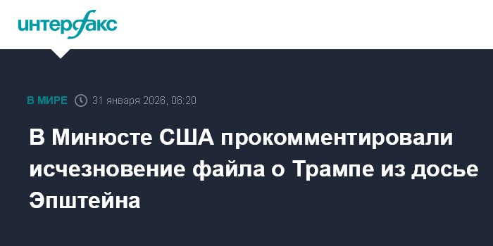 Москва. 31 января. INTERFAX.RU - Минюст США прокомментировал временное исчезновение одного из документов, опубликованных в рамках обнародования материалов по делу финансиста Джеффри Эпштейна, обвиненного в секс-торговле несовершеннолетними. Как сообщили изданию The Telegraph в американском ведомстве, файл стал недоступен из-за перегрузки серверов.