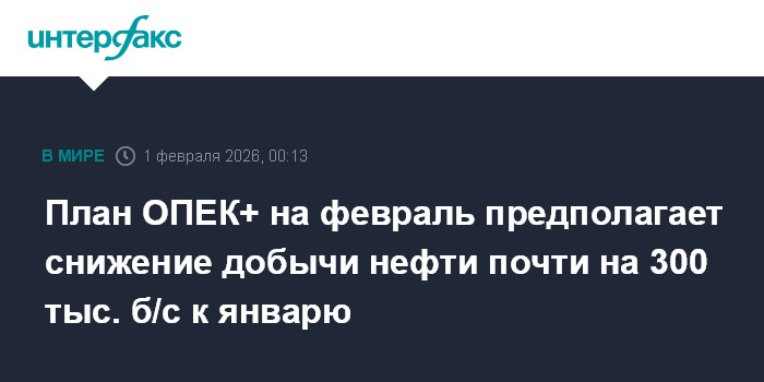 План ОПЕК+ на февраль предполагает снижение добычи нефти почти на 300 тыс. б/с к январю