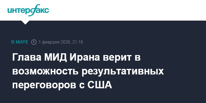 Москва. 1 февраля. INTERFAX.RU - Глава МИД Ирана Аббас Аракчи считает, что Тегеран и Вашингтон способны провести переговоры и прийти к соглашению по иранской ядерной программе, сообщает в воскресенье CNN.