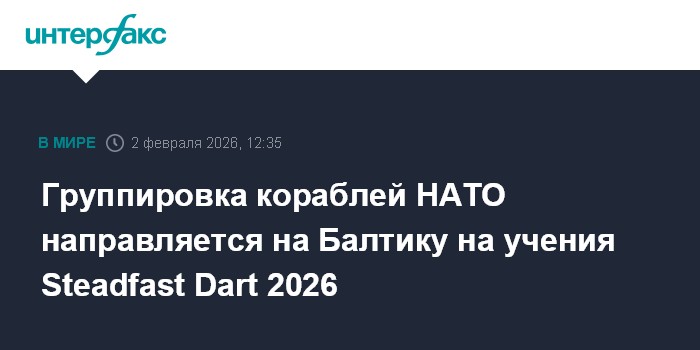 Москва. 2 февраля. INTERFAX.RU - Оперативная группировка военно-морских сил НАТО, вышедшая ранее с базы Рота в Испании, направляется в Балтийское море для участия в морской фазе учений Steadfast Dart 2026, сообщил UK Defence Journal.