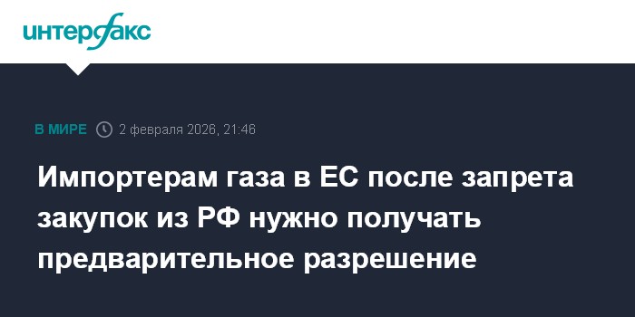 Москва. 2 февраля. INTERFAX.RU - Евросоюз, утвердивший запрет на импорт российского газа, ввел ряд исключений и правил, включая необходимость другим странам-поставщикам получать предварительное разрешение на импорт газа.