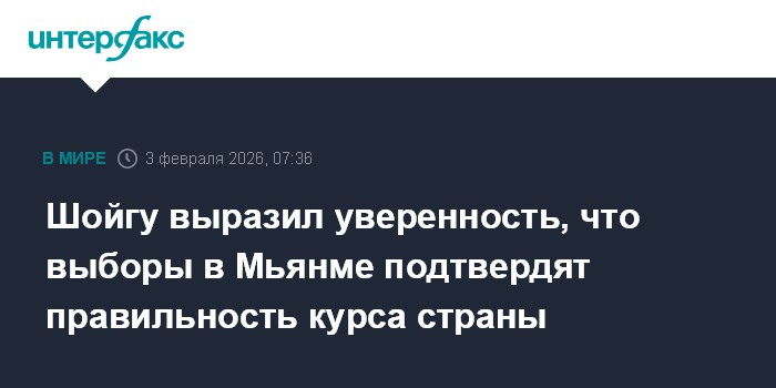 Москва. 3 февраля. INTERFAX.RU - Итоги выборов в Мьянме подтвердят всю правильность выбранного руководством страны курса, заявил журналистам секретарь Совета Безопасности России Сергей Шойгу.