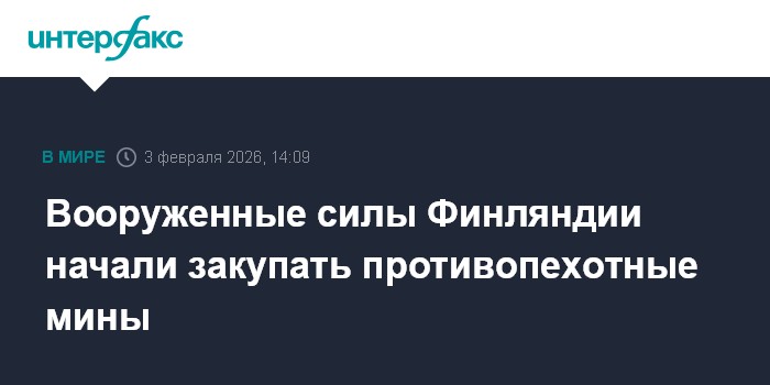 Москва. 3 февраля. INTERFAX.RU - Вооруженные силы Финляндии запустили проект по закупке противопехотных мин, планируя приобрести современные и простые мины, пишет Helsingin Sanomat.