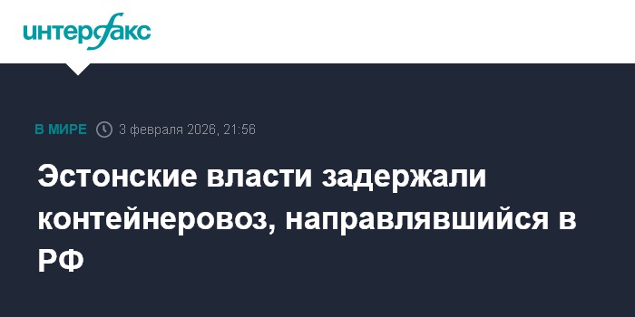 Москва. 3 февраля. INTERFAX.RU - Власти Эстонии задержали во вторник во внутреннем море республики контейнеровоз под флагом Багамских островов в связи с подозрением в контрабанде, сообщает телерадиовещатель ERR.