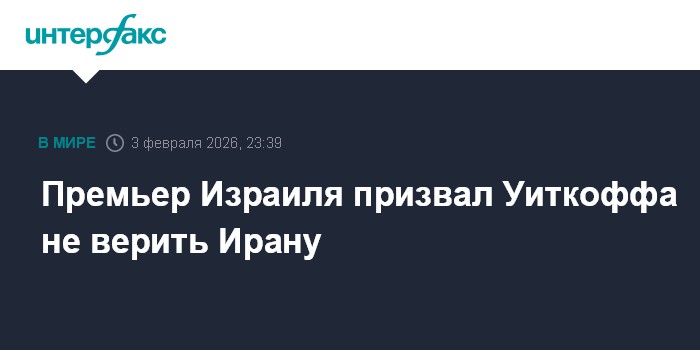 Москва. 3 февраля. INTERFAX.RU - Премьер-министр Израиля Биньямин Нетаньяху призвал спецпосланника президента США Стива Уиткоффа не полагаться на обещания Тегерана, сообщает канцелярия израильского премьера.