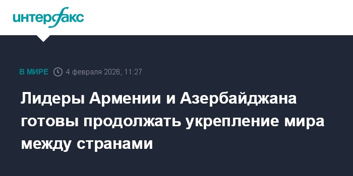 Москва. 4 февраля. INTERFAX.RU - Президент Азербайджана Ильхам Алиев и премьер-министр Армении Никол Пашинян на встрече в Абу-Даби подтвердили готовность продолжать работу по дальнейшему укреплению мира и стабильности между двумя странами и договорились поддерживать контакты в целях содействия процессу двусторонней нормализации, сообщает сайт президента Азербайджана.