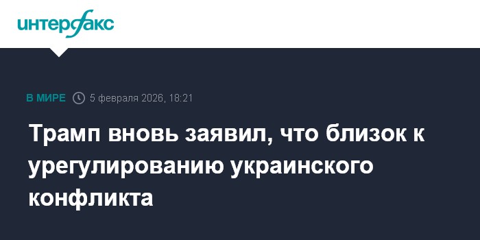 Москва. 5 февраля. INTERFAX.RU - Президент США Дональд Трамп в очередной раз заявил, что стороны заметно приблизились к завершению украинского конфликта.