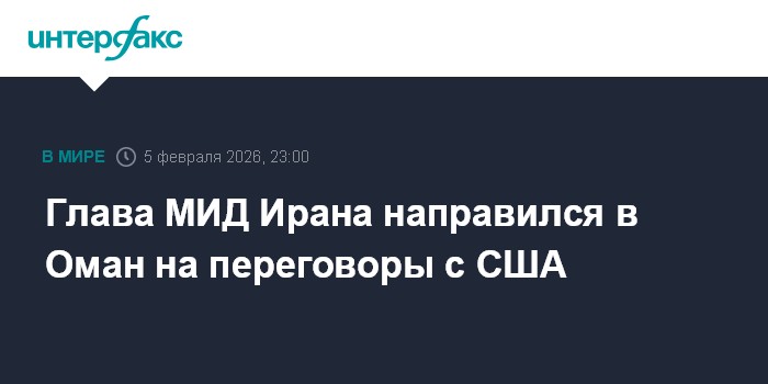 Москва. 5 февраля. INTERFAX.RU - Министр иностранных дел Ирана Аббас Аракчи отправился в оманскую столицу, чтобы принять участие в переговорах с США, передает в четверг иранский телеканал "Пресс ТВ".