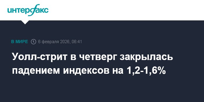 Уолл-стрит в четверг закрылась падением индексов на 1,2-1,6%