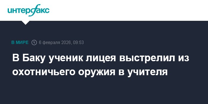 Москва. 6 февраля. INTERFAX.RU - В Баку в лицее İdrak ученик 10-го класса выстрелил из охотничьего оружия по учителю, сообщают азербайджанские СМИ.