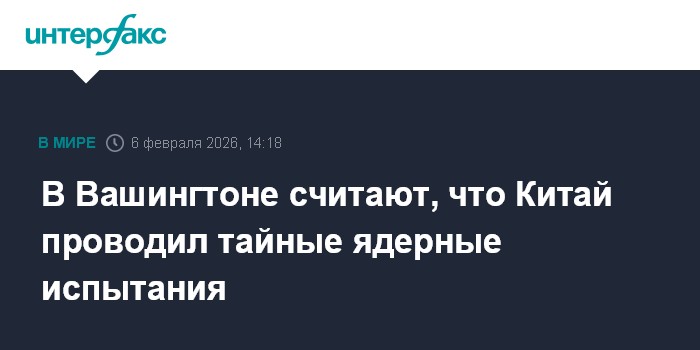 Москва. 6 февраля. INTERFAX.RU - Власти США располагают данными, что Китай вел ядерные испытания в нарушение моратория на их проведение и скрывал данные о них, заявил в пятницу заместитель госсекретаря по контролю над вооружениями и международной безопасности Томас Динанно.