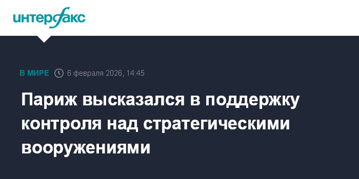 Москва. 6 февраля. INTERFAX.RU - Министерство иностранных дел Франции заявило, что поддерживает контроль над стратегическими вооружениями в связи с истечением 5 февраля российско-американского Договора о стратегических наступательных вооружениях.