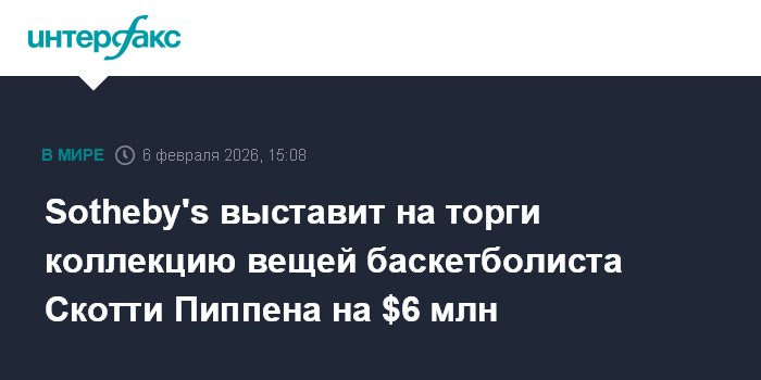 Москва. 6 февраля. INTERFAX.RU - Легендарный американский баскетболист, шестикратный чемпион Национальной баскетбольной ассоциации (НБА) в составе "Чикаго Буллз" Скотти Пиппен выставит на аукцион коллекцию памятных вещей стоимостью более $6 млн, пишет Bloomberg.