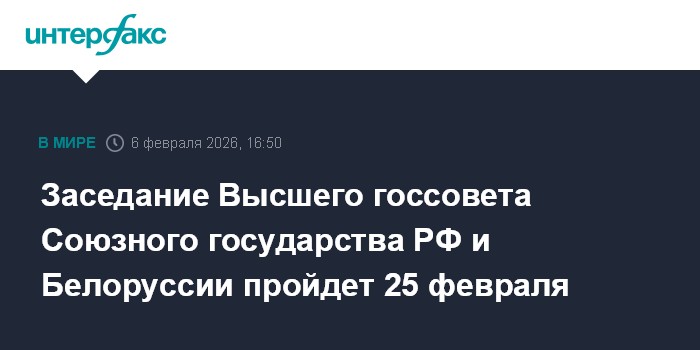 Заседание Высшего госсовета Союзного государства РФ и Белоруссии пройдет 25 февраля