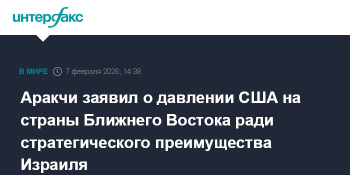 Аракчи заявил о давлении США на страны Ближнего Востока ради стратегического преимущества Израиля