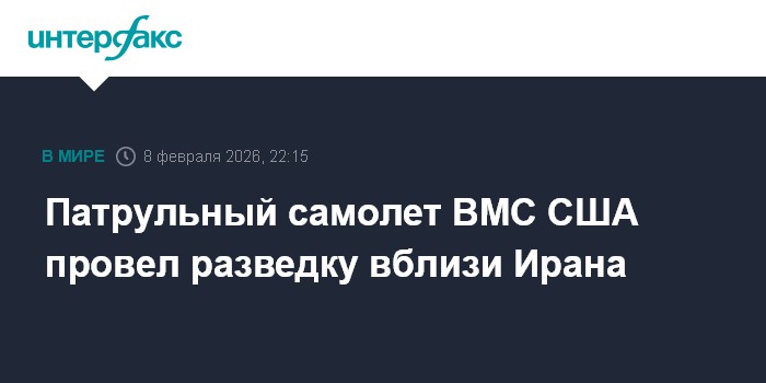 Москва. 8 февраля. INTERFAX.RU - Патрульный противолодочный самолет P-8A Poseidon ВМС США в воскресенье провел полет над Персидским заливом вблизи Ирана, следует из данных авиационного ресурса Flightradar24.