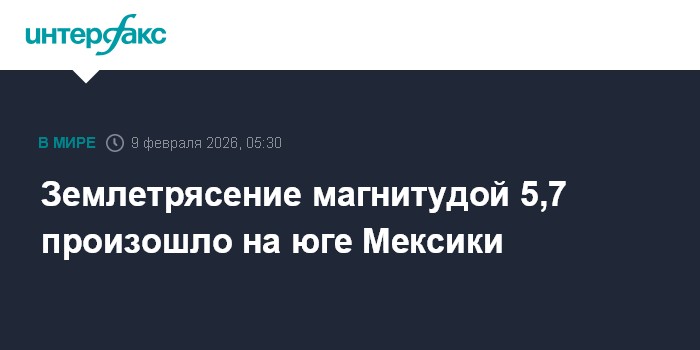 Москва. 9 февраля. INTERFAX.RU - Землетрясение магнитудой 5,7 зарегистрировано в южной части Мексики, сообщает Алтае-Саянский филиал Единой геофизической службы РАН.