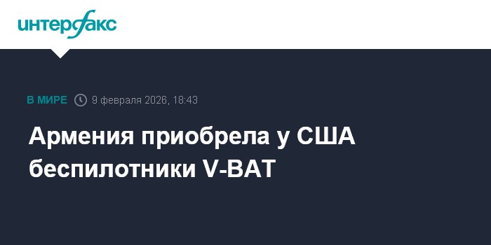Москва. 9 февраля. INTERFAX.RU - Премьер-министр Армении Никол Пашинян сообщил о закупке у США беспилотников типа V-BAT.