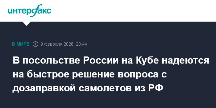 Москва. 9 февраля. INTERFAX.RU - В посольстве России на Кубе выразили надежду на оперативную проработку российскими авиаперевозчиками альтернативных вариантов дозаправки самолетов в связи с чрезвычайной ситуаций с топливом в республике.