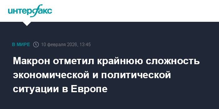 Москва. 10 февраля. INTERFAX.RU - Президент Франции Эммануэль Макрон считает, что геополитическая и геоэкономическая обстановка в Европе - чрезвычайно сложная. Он сказал об этом в интервью нескольким изданиям, в том числе The Economist.