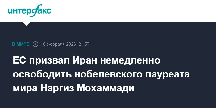 Москва. 10 февраля. INTERFAX.RU - ЕС потрясен новым приговором к очередному тюремному заключению иранской правозащитницы и лауреата Нобелевской премии мира Наргиз Мохаммади, заявил официальный представитель Европейской внешнеполитической службы (ЕВС).