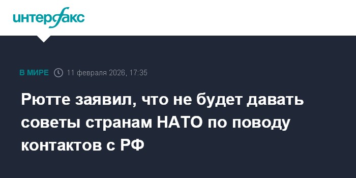 Москва. 11 февраля. INTERFAX.RU - Генсек НАТО Марк Рютте в среду заявил, что он не будет давать рекомендации союзникам по альянсу о том, как вести контакты с РФ, и добавил, что при этом поддержит любые инициативы для завершения украинского кризиса.