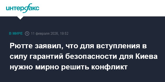 Москва. 11 февраля. INTERFAX.RU - Мирное решение украинского конфликта необходимо для вступления в действие гарантий безопасности для Украины, заявил в среду генеральный секретарь НАТО Марк Рютте.