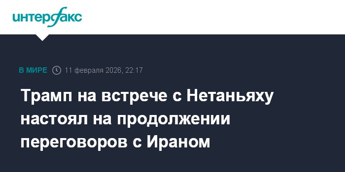 Москва. 11 февраля. INTERFAX.RU - Президент США Дональд Трамп сообщил, что провел встречу с премьер-министром Израиля Биньямином Нетаньяху, обсудил с ним ситуацию в Газе и настоял на продолжении переговоров с Ираном.
