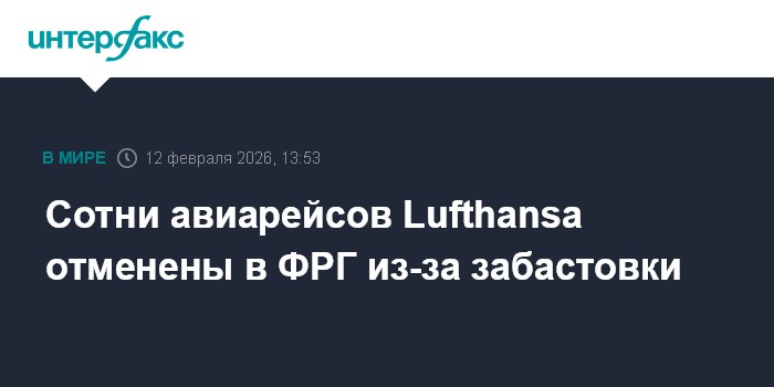 Москва. 12 февраля. INTERFAX.RU - Немецкая авиакомпания Lufthansa отменила в четверг сотни рейсов в аэропортах Германии в связи с забастовкой пилотов и экипажей, сообщает агентство Bloomberg.