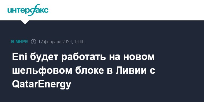 Москва. 12 февраля. INTERFAX.RU - Итальянская Eni, получившая в рамках международного тендера лицензию на разведку морского блока O1 в Ливии, будет работать по проекту в консорциуме с QatarEnergy.