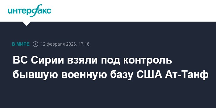 Москва. 12 февраля. INTERFAX.RU - Сирийские правительственные войска взяли под контроль базу Ат-Танф на востоке страны, которая в течение многих лет использовалась американскими войсками для борьбы с "Исламским государством" (ИГ, террористическая организация, запрещенная в России), сообщает "Аль-Арабийя" со ссылкой на Минобороны Сирии.