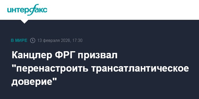 Москва. 13 февраля. INTERFAX.RU - Страны Запада по обе стороны Атлантического океана должны сотрудничать, чтобы не терпеть поражений на международной арене, заявил канцлер ФРГ Фридрих Мерц.