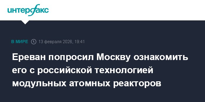 Москва. 13 февраля. INTERFAX.RU - Армения попросила Россию ознакомить армянскую сторону с технологией модульных реакторов на воде, сообщил журналистам премьер-министр Армении Никол Пашинян.