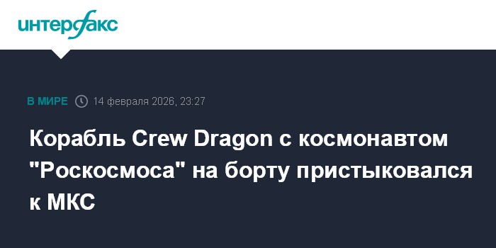 Москва. 14 февраля. INTERFAX.RU - Американский многоразовый космический корабль Crew Dragon, запущенный накануне, в субботу пристыковался к Международной космической станции (МКС), сообщает NASA.