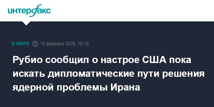 Москва. 15 февраля. INTERFAX.RU - Вашингтон пока настроен решать ядерную проблему Ирана путем дипломатии, заявил госсекретарь США Марко Рубио.
