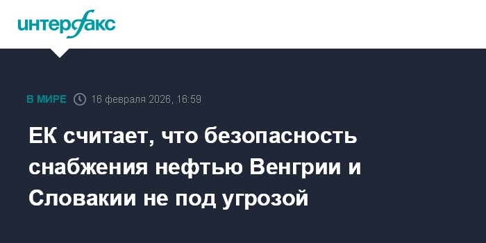 Москва. 16 февраля. INTERFAX.RU - Еврокомиссия (ЕК) отслеживает ситуацию с прекращением поставок нефти из РФ по нефтепроводу "Дружба" в Венгрию и Словакию, но не видит угрозы для безопасности их снабжения, заявила официальный представитель ЕК Анна-Кайса Итконен.