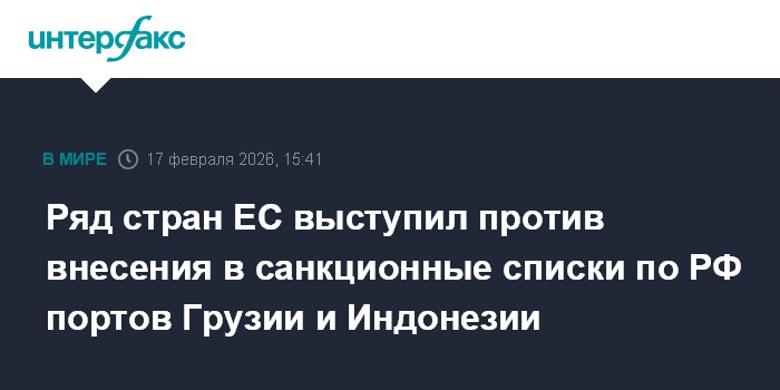 Москва. 17 февраля. INTERFAX.RU - Некоторые страны ЕС возражают против включения в "черные списки" в рамках готовящегося 20-го пакета санкций против РФ порта Кулеви в Грузии и порта в Индонезии, сообщает во вторник Bloomberg со ссылкой на источники.