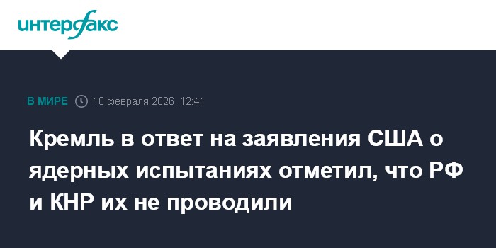 Москва. 18 февраля. INTERFAX.RU - Ни Россия, ни Китай никаких ядерных испытаний не проводили, заявил пресс-секретарь президента РФ Дмитрий Песков.