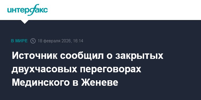 Москва. 18 февраля. INTERFAX.RU - Глава российской делегации на переговорах по украинскому урегулированию Владимир Мединский после завершения консультаций в Женеве провел еще одну встречу в закрытом формате.
