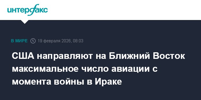 Москва. 19 февраля. INTERFAX.RU - США сосредоточили наибольшую авиационную мощь на Ближнем Востоке со времен вторжения в Ирак, сообщает Wall Street Journal.